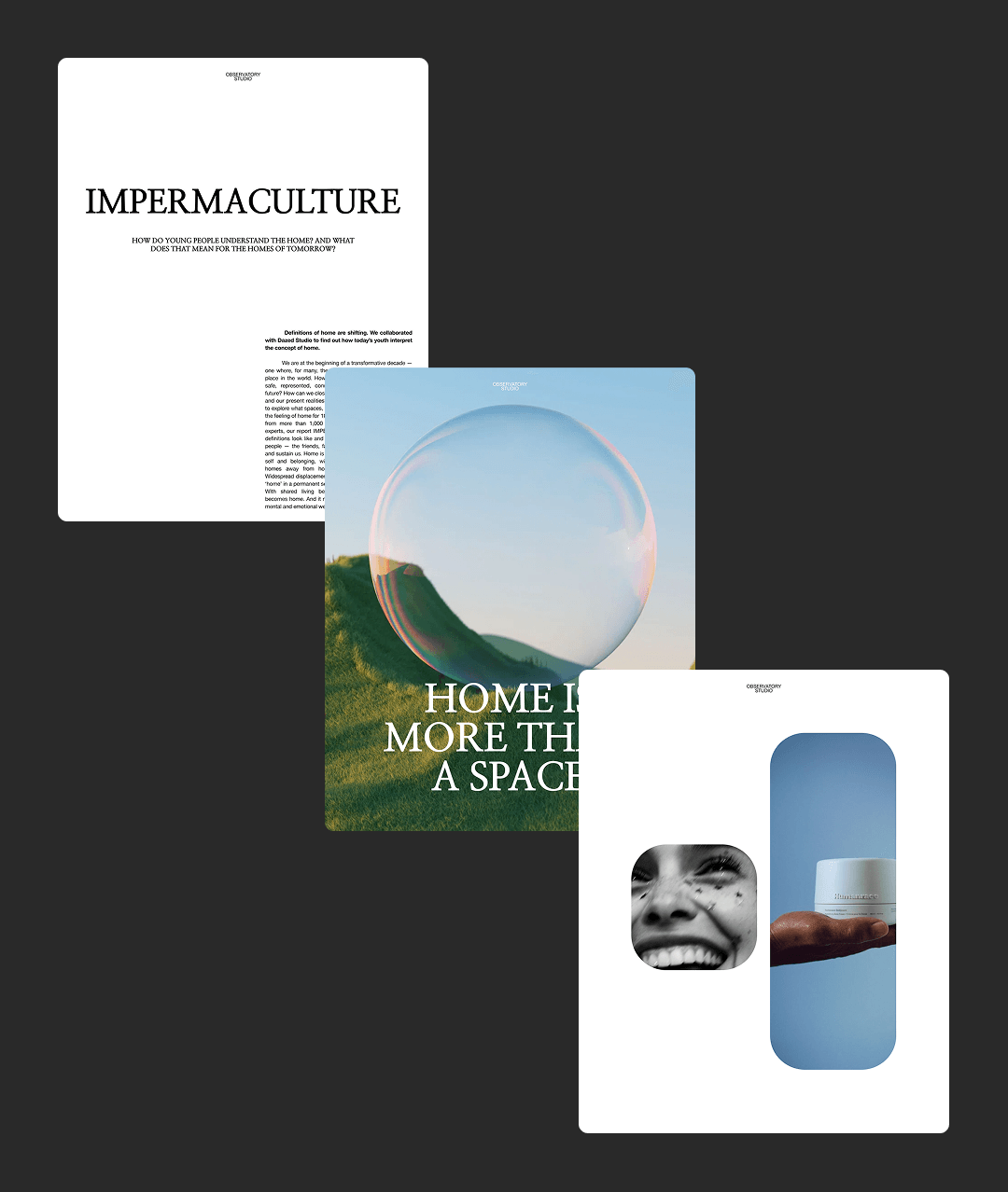 We partnered with Helen Job, former Head of Research at SPACE10, to create three identity explorations that reflect research and today’s cultural landscape, experimenting with adaptable visuals, bold typography, and a raw brand mark rooted in insight and relevance.