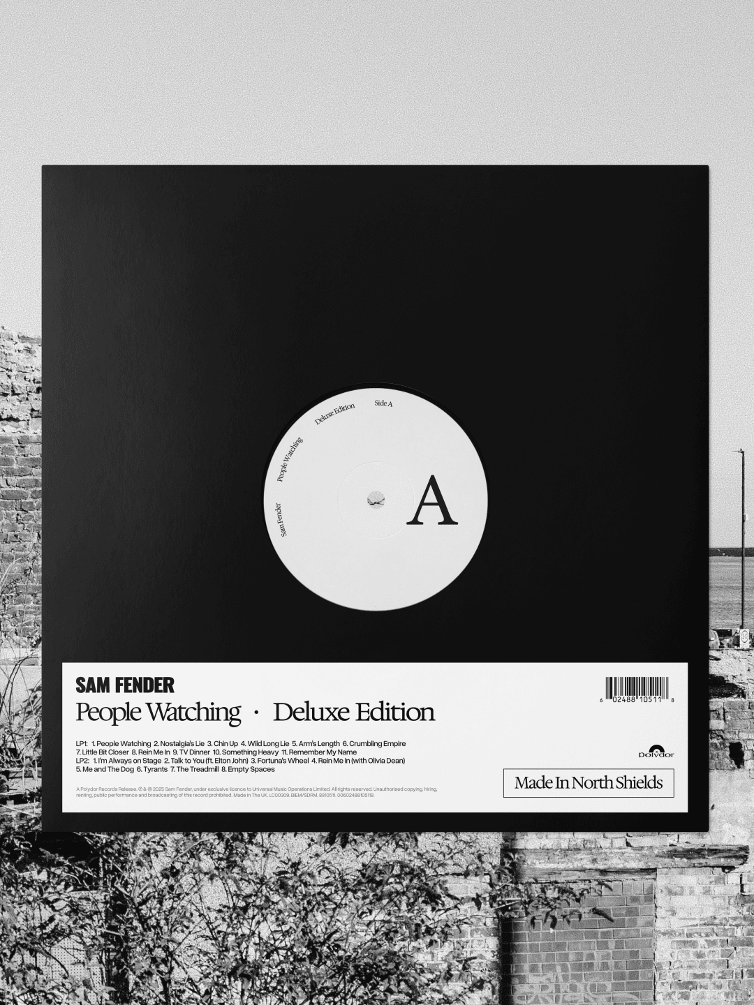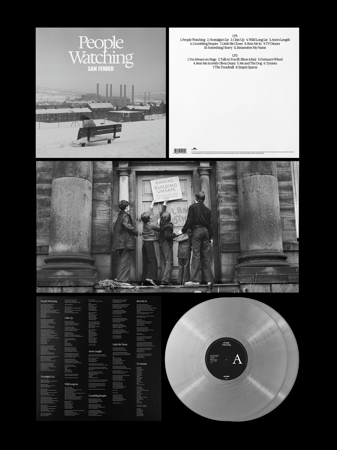 People Watching brings Sam Fender’s music to life through the imagery of Tish Murtha. A type-driven album design that puts his storytelling and lyricism front and centre, all within a bold black and white aesthetic. People Watching has become the fastest-selling vinyl album by a British act this century.